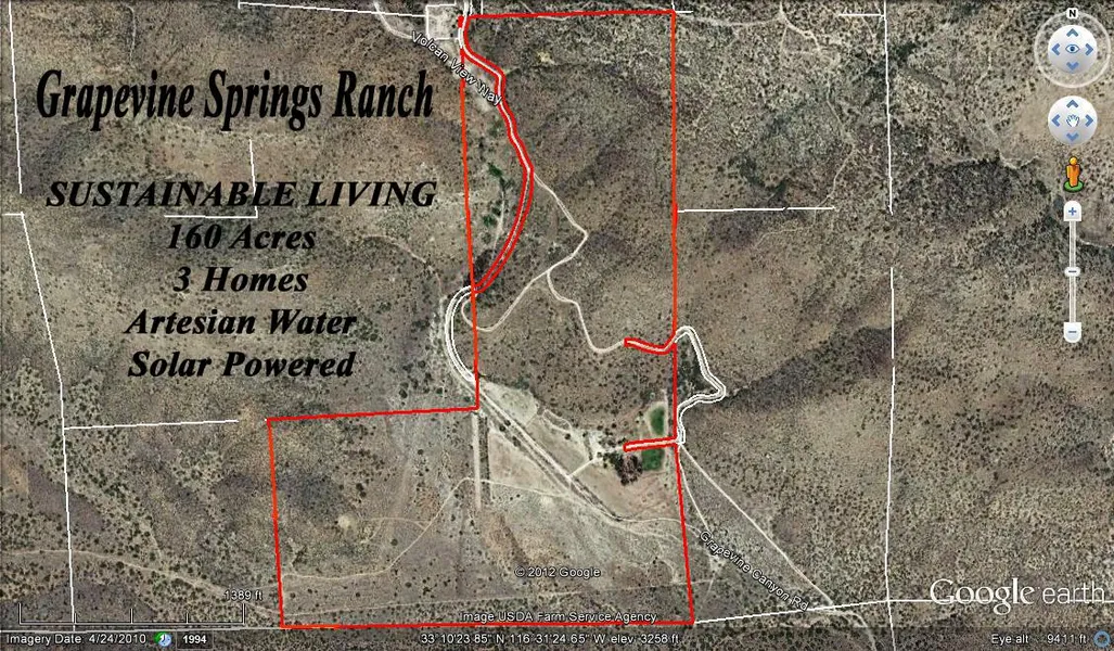 160 acre GRAPEVINE SPRINGS RANCH offers a rare opportunity to live an entirely self-sustaining lifestyle. This landmark ranch features a very usable landscape with artesian water springs located at the highest point on the property - a gravity fed water system. A stand-alone solar system powers homes on the property. This legendary ranch is