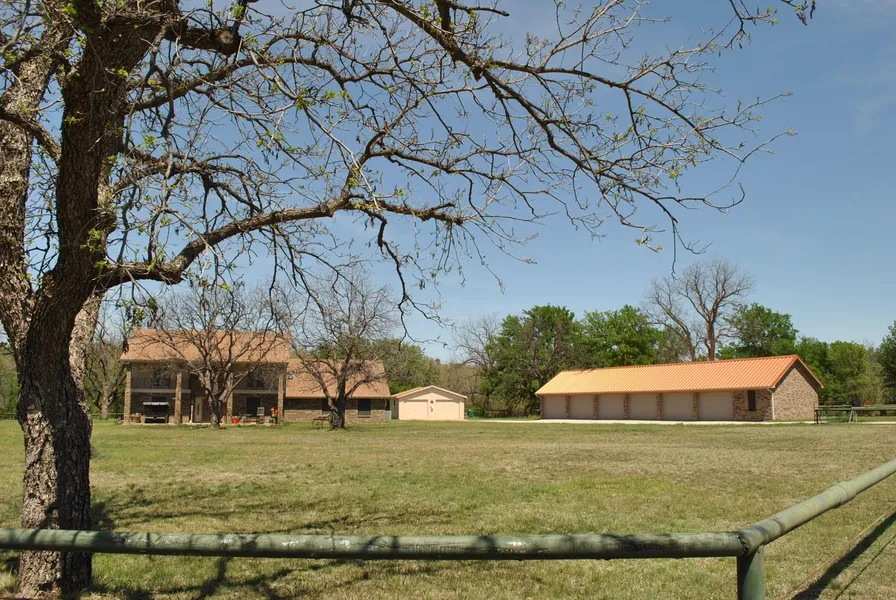 Sprawling countryside estate on 160 acres m/l; beautiful, brick home with three (3) bedrooms, two and a half (2.5) bathrooms, two (2) car attached garage, two (2) car detached garage, six (6) car detached garage, Enormous 60' x 40' wood building with electricity, septic system and bathroom with an additional 60' x 9' shed on the side; 35' x 35' equipment shed or hay storage shed; This home features a huge den with brick insert wood-burning fireplace, two (2) ceiling fans and carpet with double French doors leading into the 37' x 12' gameroom or sunroom which is perfect for large family gatherings; Deluxe kitchen and breakfast nook combination features an island, open bar peninsula, double sink, free-standing range, lighted pot rack above island, dishwasher, built-in microwave, ceramic tile countertop, ample cabinetry and more; The large utility room has full-size washer and dryer connections, a separate sink, drying rack and addition built-in cabinets; Private sauna room with hot tub; Master bedroom is located downstairs and features a trey ceiling, ceiling fan, carpet, lots of natural lighting and an ensuite; Master bathroom has a tub/shower combination, toilet and separate vanity, walk-in closets and separate dressing area with built-ins; Formal dining room is located just across the hall and a half bath is down the hall; Two bedrooms and a full-size bathroom are located on the second level once you assend the wooden staircase; Laminate flooring on the upstairs landing leads you into each bedroom; Bedroom # 2 has carpet, a ceiling fan, and double doors leading to the balcony; Bedroom # 3 has laminate floors, extra closet space, ceiling fan and double doors leading out to a balcony; Total electric; three (3) HVAC units; pipe gates (one electric) and MORE! Experience secluded country living on this one of a kind estate complete with nine (9) ponds, barbed wire fences surrounding the perimeter, varied terrain from meadows to seasonal creeks to rocky ridges and hillsides, workshop, storage buildings, multiple garages, corrals, oak trees, and more!