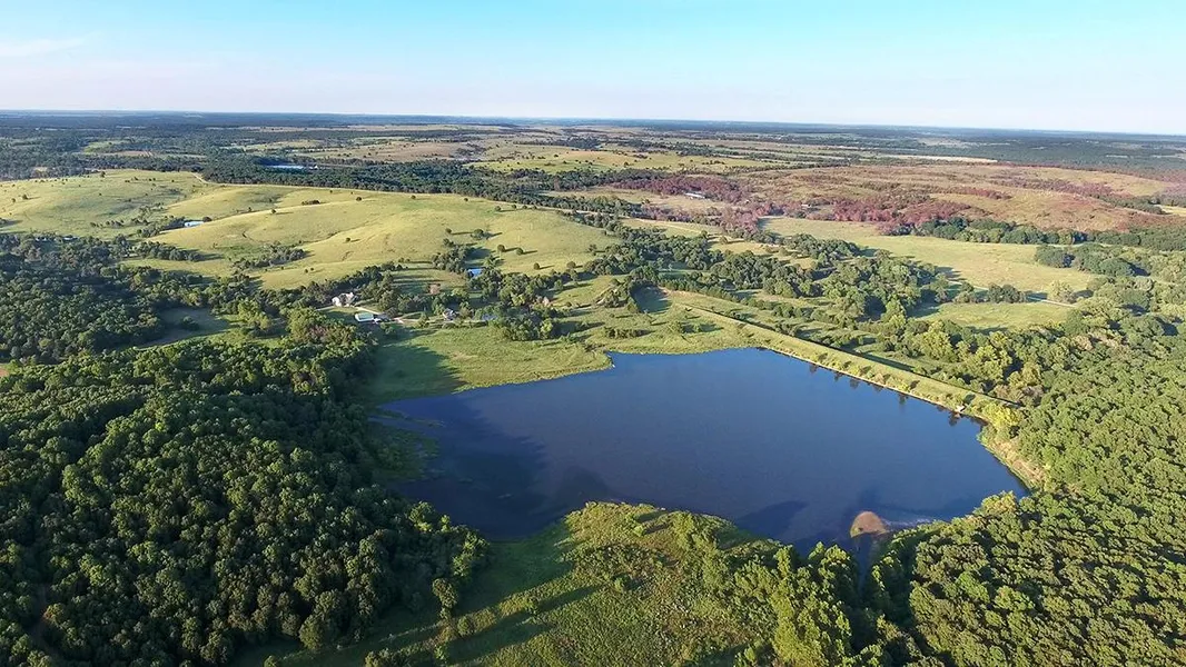 Tract 1: 160 acres encompassing the ranch headquarters, 2,244 SF home with full basement, 1,015 SF hunting lodge, 40x40 metal building, 20 acres lake and stunning topography. This parcel is mostly wooded, has outstanding wildlife habitat and water features that create a recreational paradise.