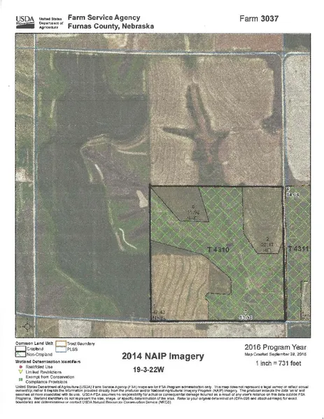 Here is a great quarter of land for you in a great location. This 160 acres consists of 83 +/- acres of grass and 77 +/- acres of dry land crop. FSA Base information: Wheat 30.99, Oats 1.9, Grain Sorghum 32.79. Soils: 62.21 acres Class IID dry crop; 5.62 acres Class IIID dry crop; 8.75 acres Class IVD dry crop; 79.42 acres grass; 4 acres road.