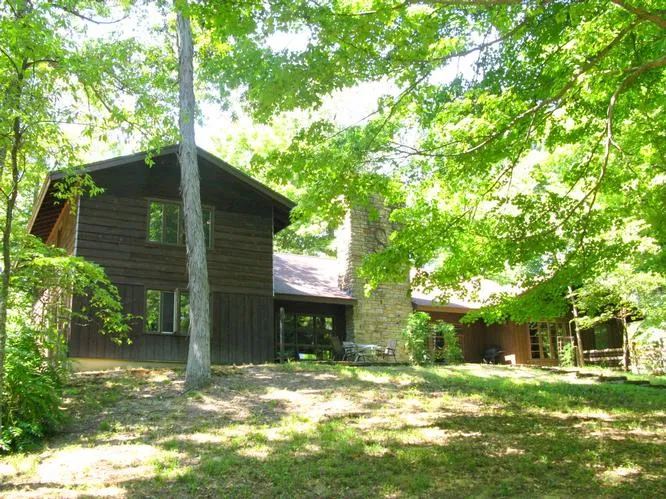 Fishing & hunting dream come true. Lodge-style home amid 162 acres of woods, hills, valleys, two lakes & miles of trails w/absolute privacy. Home constructed in harmony with nature. Massive great room has heated brick floors, Brown County stone wood burning fireplace, soaring ceiling with curly maple beams. Beautiful cherry cabinets in kitchen; indoor BBQ grill; brick floors. Fronts mile on Salt Creek; S. property line 1.1 miles long; 3,300' of frontage on Brown Hill Rd.