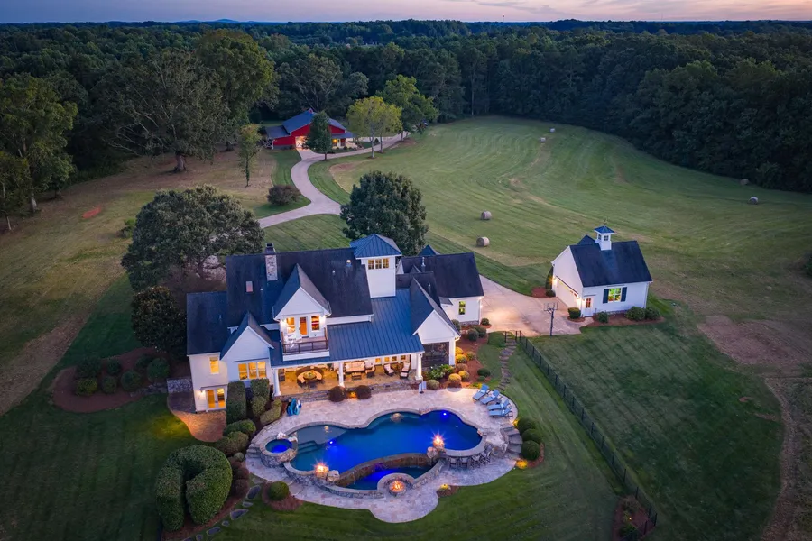 Set across 162.6 acres in Statesville, North Carolina, this private legacy estate offers a rare opportunity to steward a sanctuary where architecture, agriculture and nature exist in balance. Enter through a winding concrete drive framed by mature hardwoods, a producing orchard and vineyard, and arrive at a 6,617-square-foot residence custom designed to embrace the lands grandeur while offering every modern comfort. Built in collaboration with a respected architect, builder and interior designer, the residence spans three finished levels plus a tower room providing panoramic sunset views over the Blue Ridge foothills. An expansive covered porch welcomes guests into a gracious main level anchored by a great room with fireplace, an epicurean kitchen, breakfast room and keeping room each with access to a multi-level veranda and pool terrace. Custom cabinetry, dual islands, top-tier applian...