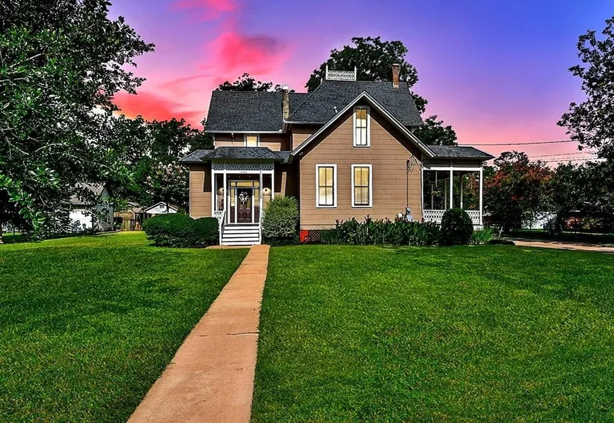 Beautiful Victorian Style home awaits its new owners. Spacious den features a shiplap wall, large windows, built-in custom cabinetry to store your books or collectibles in, and a hall tree bench for organization. Nice sized living room located to the back of the home great for entertaining. The formal dining area is a perfect room for your treasured antiques and features a elegant chandelier. The fully equipped kitchen with modern conveniences: farmhouse style sink, 2 stainless double ovens, a dishwasher, 2 refrigerators to convey, an island cook top, under cabinet lighting, subway tile backsplash, beautiful counter tops, abundant cabinetry and a butler's pantry. The butler's pantry can conveniently store your cookware, dishes and food items. Enjoy the luxury of large sized rooms in this home. The primary bedroom is located downstairs and situated for privacy. Located upstairs you have 3 bedrooms, 2 baths, and the laundry area. Additional features include crown molding, sparkling wood floors throughout home, tall ceilings, 4 decorative fireplaces, 2 gas log fireplaces, a gorgeous staircase, wood plantation shutters and much more. Enjoy your cool summer evenings on the front, side or cozy back porch a perfect spot for entertaining or relaxing. Additional bonuses include a great location, manicured landscaped lawn, fenced backyard, mature trees, a studio that could be used for a home office, 2 car detached garage with an workshop area, sprinkler system, and plenty of parking in the driveway. Own your piece of history! Dreams do come true! Seller is looking for reasonable offers - call today!