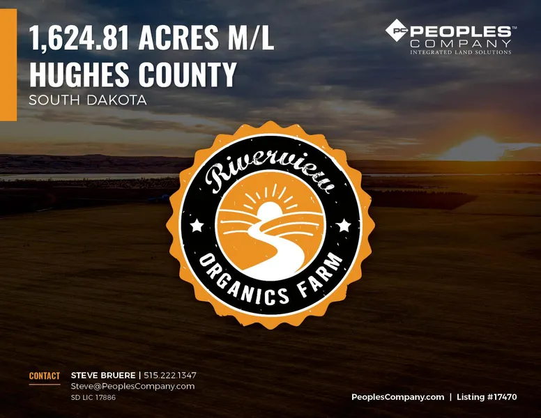 Positioned along the northern riverbanks of the scenic Missouri River in central South Dakota, the Riverview Organics Farm offers 1,624.81 contiguous acres m/l of highly tillable, organically certified farmland. The farm was fully transitioned to organic crop production in 2021. Previous organic crops have included sunflowers, wheat, and purple corn. The organic crops raised during the 2023 growing season consisted of corn, soy, chickpeas, and alfalfa. There is a three-year lease in place with a tenant who is introducing organic potatoes into the rotation and the addition of this high-value crop has the potential to create significant long-term opportunities.
