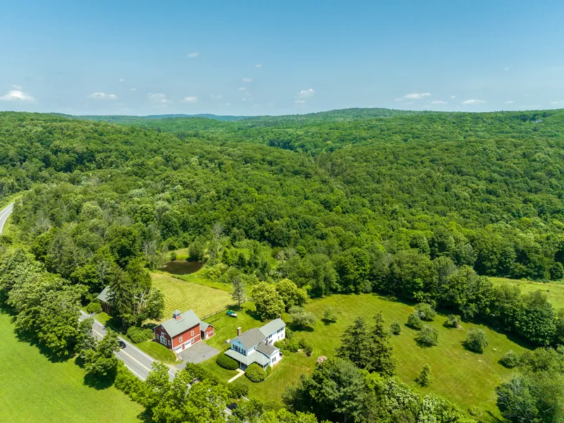 Listed on the CT Historic Register, the home was built 1851 by Milton & John Curtiss who established a successful farm. The remarkably well-preserved farmhouse, together with the intact historic setting of open fields and A+ barns is a truly exceptional property with great investment potential or a country retreat. The barns have been well preserved which add to the property and make them architecturally significant as a Grand Revival style house. The house features a large kitchen with a commercial range and granite counters. Everything is up to date without having destroyed the integrity of this historic property. The outside amenities are superb with a large screened in porch, a patio area overlooking a formal garden and the orchards featuring apples, pears, raspberries and two beautiful chestnut trees providing shade for the backyard. It is situated on 42 acres to explore, great for hiking and cross country skiing. There is a swimmable pond and a gorge with a waterfall. The town beach is 2.2 miles away and has a lifeguard and picnic area. The home has a long standing rental income through AirBnB with reviews and bookings year round.