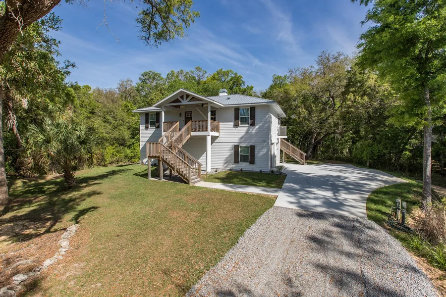 GORGEOUS RIVERFRONT HOME ON OVER 2 ACRES! Live the Nature Coast life in this STUNNING 2bed(plus bonus room that could be 3rd bedroom)/3bath/2car garage stilt home with dock on 2.2 (approx) acres directly on the iconic Withlacoochee River. Home was built to last in 2021! Nothing was overlooked...quality & details are obvious inside & outside of this home! As soon as you enter, you will be blown away by the gorgeous tongue & groove ceiling through common area. Luxury Vinyl Planking throughout main level of the home. The kitchen doesn't disappoint, granite over wood, top cabinets are 42", island & breakfast bar gives plenty of counterspace for the chef & prep! Heart of the home is the stone fireplace (wood burning) in the living room. Popular split floor plan with Master Suite on one side of the home & guest bed/bath on the other. Master Ste complete with walk in closet & Master Bath with d...