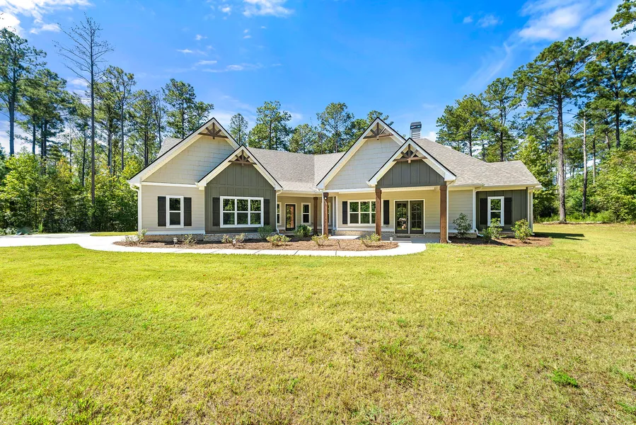 Experience refined simplicity at 164 Rowe Rd in Senoia, a Trademark Quality Homes Magnolia plan set on six acres of wooded privacy-approximately a quarter-mile off the road. Designed as a predominantly single-level ranch with an upstairs private bonus suite, the approach is quiet and secluded, with tall trees framing the home and creating an everyday retreat. Inside, an open layout draws the eye from the great room to dining and into a gourmet kitchen designed for both workflow and gathering: an oversized island, stainless appliances, cooktop, double oven, gleaming granite, a generous walk-in pantry, and abundant cabinetry. Light is a signature feature here. An abundance of windows along the front and back of the home invites natural light from morning to evening, giving interiors a bright, airy feel and an easy connection to the landscape. The main-level private suite is calm and well finished, with a tray ceiling, upgraded wood flooring and a spa-styled bath featuring double vanities, a large shower, soaking tub, water closet and dual spacious walk-in closets. Two additional main-level bedrooms share a well-appointed Jack-and-Jill bath with separate vanities. Upstairs, a separate private suite with full bath is ideal for long visits, studio work, or a quiet office. Outdoor living is a highlight. Twin covered rear porches extend daily life into the woods. One is a dedicated "Game Day" porch-well covered with a fireplace and TV niche-perfect for the grilling at dusk you'll love, and for creating a comfortable fair-weather living room that takes full advantage of the setting's privacy. The second porch offers a quieter spot for coffee, reading, or simply listening to the trees. Performance upgrades-spray-foam insulation and high-efficiency Low-E windows-support comfort and thoughtful energy use. The location is both private and practical: a popular pocket of Senoia known for its rural feel and established streetscapes, with easy access to Highway 85 and Highway 16, and about seven minutes to Publix or Downtown Senoia. Lightly used by a part-time owner, the residence presents with a remarkably fresh, near-new feel. With 3,341 sq ft of curated space on a rare wooded tract, this home balances everyday function with understated elegance and true seclusion. Don't miss the opportunity to own a newer residence on private, wooded acreage in Senoia's timeless rural landscape.
