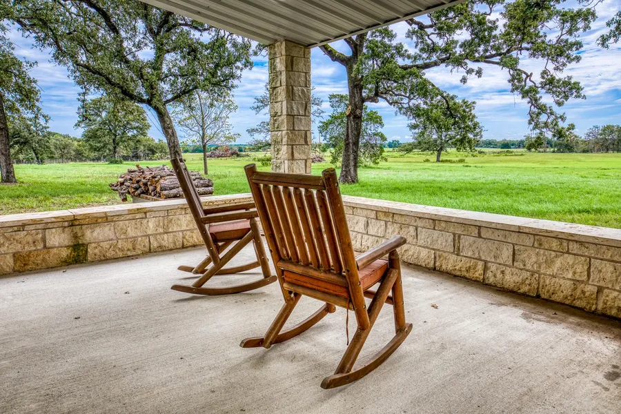 1,892' of County Road 162 frontage (paved & gravel). Pipe entrance and electric gate leads to the Live Oak tree lined driveway to the Home & Barns. Pear, Persimmon and Cottonwood trees surround the main home. Mature Post Oaks surround the Barndominium and Equipment Barn.