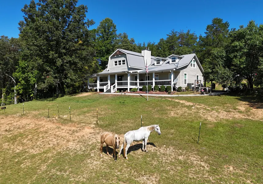 Bring The Horses! 22.7 UNRESTRICTED acres boasting a balance of Fenced pastures & Wooded riding trails. 2700+ sq ft of htd living space, 3BR 3BA with TREMENDOUS Owner suite perfect for HUGE furniture! Walk-in Closet, Generous bath updated with shower & dbl vanity, Wide doors with ADA in mind. 24ft Soaring Ceiling in Entrance Living room. Gas log fplc, ALL NEW WINDOWS throughout the house.Pergo Floors. Kitchen with less than 3yr old appliances. Mudroom has full bath & laundry w/ access door to the farm. 1 Car gar. Upper level with 2 Spacious BRs & a beautifully remodeled bathroom with soaking tub. Leaf Filter Gutter System. Sunsets from the front porch. Barn with equipment stalls, 2 horse stalls, tack room, bonus room & a septic. Additional older buildings on property. Multiple building sites. Live the dream, Homestead, ride your toys, raise farm animals. Public water.