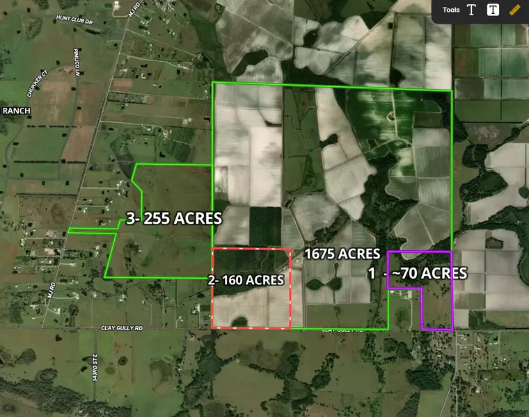 Introducing a rare and expansive 1,675-acre development opportunity situated just two miles south of Myakka City and adjacent to the iconic Terranova Equestrian Ranch. This exceptional tract of land is perfectly positioned west of Myakka City and east of Sarasota, providing an ideal setting for a world-class luxury community. The property boasts over one mile of frontage on scenic Clay Gully Road, with additional access from MJ Road, ensuring ease of entry and outstanding visibility.