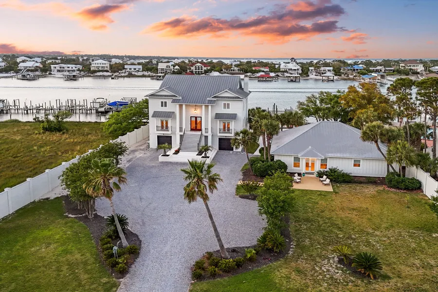 Welcome to Heron's Landing situated on 2.13 acres in Perdido Key, Florida! Nestled along the shores of Old River, this stunning 7-bedroom, 7.5-bath, 2 home property offers you the ultimate coastal living experience. Showcasing abundant, wide open living space, stretched across 8,043 sf between the main house, plus the pool/guest house, this property is perfect for entertaining with room for all. Picture yourself hosting gatherings in the spacious living room or preparing delicious meals in the kitchen. The open-concept kitchen, adorned with top-of-the-line stainless steel appliances and sleek countertops, beckons the inner gourmet chef within you. The primary bedroom is all about serenity and class, with views that'll make waking up a dream. And don't even get us started on the balcony – it's basically your front-row seat to sunset magic over Old River. Escape to your private outdoor hav...