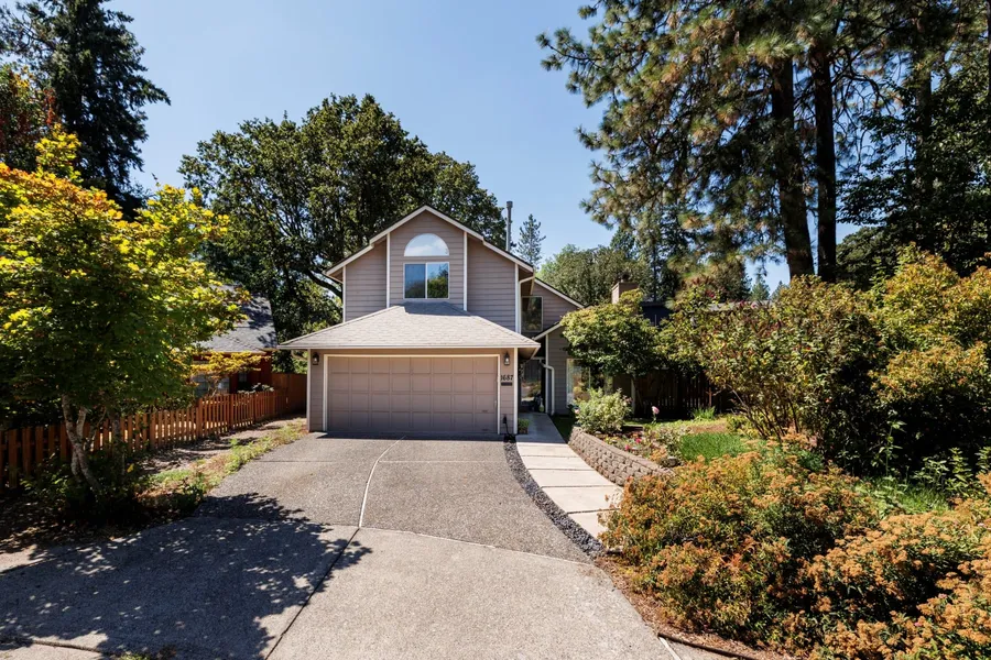 Vaulted ceilings + cozy wood-burning fireplace = instant charm in this gem! Bright open kitchen with solid counters, bar seating & appliances included flows into airy living space made for entertaining. Step out to a party-ready deck with gazebo, fenced pup area & berry bushes. Upstairs, the vaulted primary suite shines with dual sinks, walk-in closet & skylights. Trails, parks & forest just out the back gate'your own slice of PNW living!