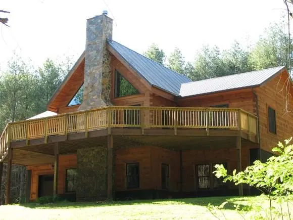 A private driveway leads to this 2560 finished sq. ft. , (3 bedrooms, 3 baths) beautiful home just build in 2007 with solid quality in mind, a true log home, no drywall here! The floors are 6" plank and ceilings are heavy timber exposed beam. Featuring an open floor plan on each level and the bedrooms have adjoining baths. The main floor has a large great room/kitchen/dining with massive windows to allow in lots of natural light. There is a large woodburning stone fireplace in the living area for cool nights, a large custom deck for sunny days and a covered porch for those too sunny days. You'll love this kitchen with superior quality Shuler Sugar Creek Cherry cabinets with a hand rubbed finish, built in GE Profile and Bosch appliances and lots of counter space. All baths are upgraded with Kohler/American Standard fixtures and are finished with custom cabinets and quality tile work. The master suite has sliding doors to the deck and the bath offers you a walk-in tile shower, jacuzzi tub and a beautiful vanity. There is a second living area with a full kitchen, bath and bedroom in the full daylight basement that also has a separate entrance making it perfect for a mother in law or teen quarters. 1088 finished sq. ft. in basement and 384 sq. ft. unfinished with a garage door. Plus there is a nice laundry room with front loading GE washer, dryer and upright freezer all new and included with the purchase of this home. There is also a large Duchwest woodstove that will heat the entire house, 400 amp service, underground power and a generator hookup. Outside, there is a matching workshop complete with electrical service for your creative side.