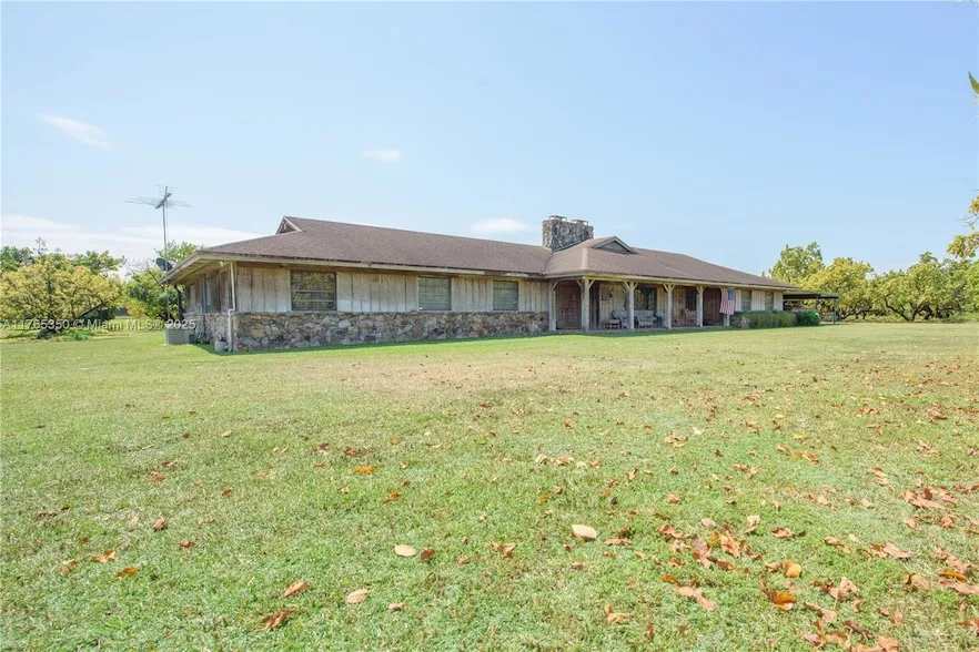 Private farmhouse oasis sitting on 3 Folios = 17+ ac income-producing avocado grove in Redland, FL near fruit & spice park! This custom CBS home, covered in cedar, features a guest/house & offers privacy, & resort-style living. Includes formal living/dining space, spacious kitchen, two fireplaces, & master suite. Four sliding doors open to an 1,860 sq ft screened pool w/ waterfall, sun shelf, & 61x13 patio with bar/grill great for hosting 100+ guests! Wide porches, 1,335 sq ft carport, & 4,000 sq ft, 20-ft-high tool shed with 1,000 sq ft overhang ideal for equipment& toys. Property is fully fenced with security cameras onsite. Diesel irrigation & tropical fruit trees: lychee, papaya, banana, carambola, & aloe. Built beyond Miami-Dade code. Zoned to build 2 more homes.