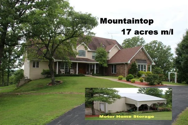 CUSTOM MOUNTAINTOP RETREAT: This 4 BR 3 BA home has vaulted ceilings, a custom spiral oak staircase and several custom cherry wood built-ins. Hand made raised panel oak doors and trim are other features. Over 6000 SqFt under roof with 4215 SqFt that's heated/cooled.. A gorgeous covered gazebo has views of Mtn. Home below. Set on 17.11 wooded acres m/l full of deer. Also, a 3 car garage and even a detached 30 X 40 building for your motor home. Priced at $559,900.