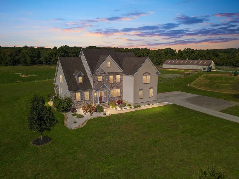 Nestled in the serene landscapes of Warwick, MD, just a stone's throw away from Middletown, DE, lies this stunning custom-built (2008) home on a vast 17+ acre lot. Boasting over 4,000 sq ft of luxurious upgrades, this property is the epitome of elegance and comfort. The residence features 4 generously sized bedrooms, 3.1 baths, and a main level bedroom suite complemented by a cozy fireplace. The gourmet kitchen is a chef's dream, while the cathedral ceilings adorned with exquisite moldings elevate the home's grandeur. The property is equipped with dual heat pumps, one of which is brand new as of 2023, and dual on-demand hot water heaters. The expansive deck offers the perfect setting for hosting and entertaining.