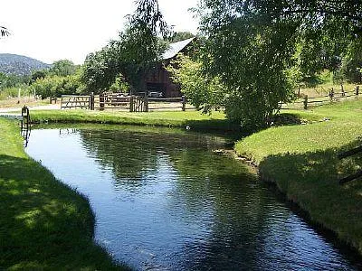 Waterfalls and ponds, huge trees, and green grass are what describe this one of a kind property. Yes, you can have your own private year-round waterfall, which is about 40 feet long. It races down to a gorgeous pond and then overflows into another pond. Of course, there is a water right that goes with the property. Currently, there is a log cabin plus another smaller cabin and a large historic barn all located on the property. From the pastureland above the house, you have unbelievable mountain views in all directions. With the 17+ acres, this is a wonderful location to build your dream home.