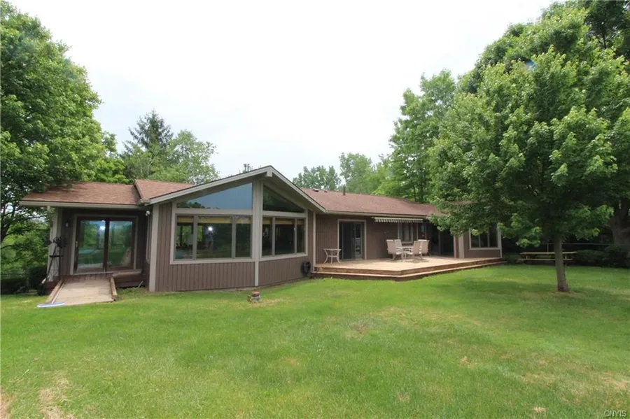 This spectacular home perched on 17 acres of total privacy has it all. The expansive windows throughout capture the breath-taking vistas of Cross Lake and mother nature in all her glory. The enclosed porch, deck, and patio overlook the in-ground pool with new liner. Association membership offers members only access to 1200 of waterfront, an additional 8 acres of private beaches, picnic areas, boat launch, and personal dock space on Cross Lake and Seneca river! The list of improvements is impressive: completely remodeled kitchen with solid surface counters, maple cabinets, new fixtures, island with butcher block top, ceramic backsplash and high end Profile Stainless Steel appliances; new bath taken to the studs includes jacuzzi tub, new vanity, shower and updated fixtures; Additional updates include roof, hot water heater, washer/dryer, garage doors, generator, air conditioning, vinyl siding, landscaping, automatic sun setter awning. vinyl siding, and freshly painted interior. The master suite with French doors and two additional areas is outstanding. The central location means you are just 15-20 minutes from Syracuse, Auburn, Skaneateles, and the NYS thruway.