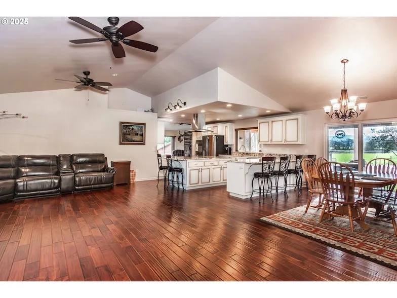 **Exceptional Agricultural Opportunity in Beautiful Umpqua Valley!**Discover the potential of this 17+-acre prime farmland property, perfectly situated in the heart of the Umpqua. The land is currently optimized for an excellent hay crop and gets up to 3 cuttings per year. With river irrigation rights, this parcel is ideal for an array of agricultural ventures. Property is fully fenced, making it suitable for livestock. The dedicated fenced garden area and greenhouse offer further opportunities. Irrigation equipment and lines are included, ensuring optimal use of existing water rights. While the land is the star of the show, the custom-built main home complements this agricultural haven beautifully. Its single-level design features exquisite hardwood flooring throughout, gourmet kitchen with a cooking island and stunning granite countertops. For hobbyists or those needing extra storage, ...