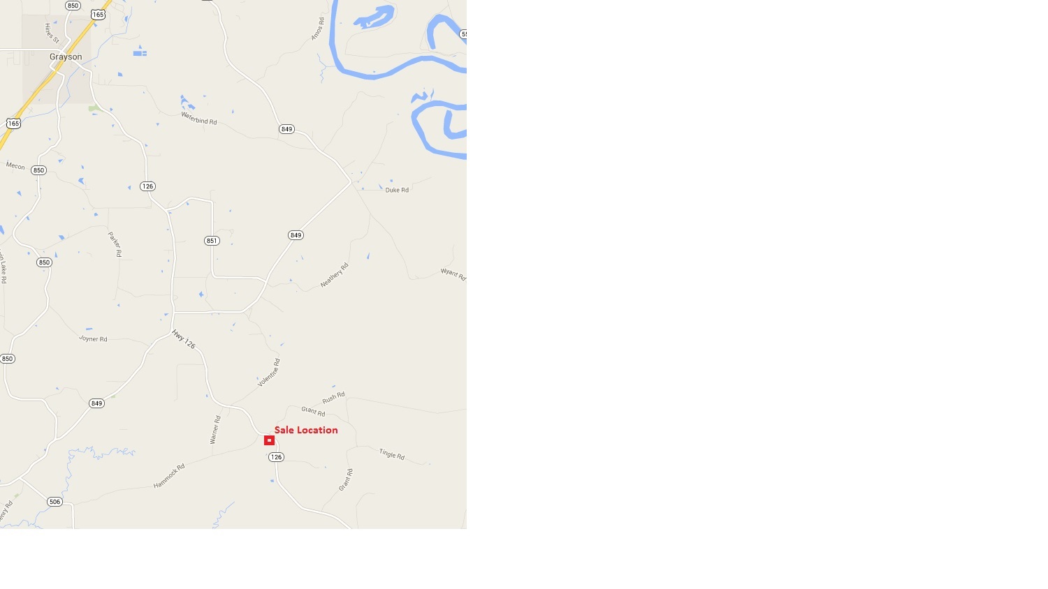 Research Parcel InformationFrom Grayson take highway 126 east go about 7 miles property on west side of road past Hammock road and bridge. Look for RRB sign.