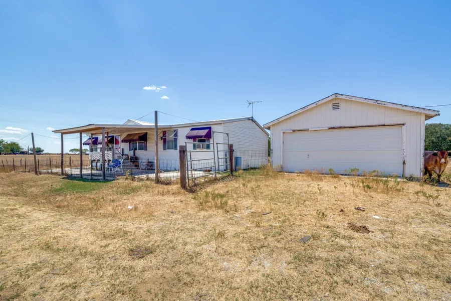 Spacious 17-acre land offering special use agricultural valuation for low taxes. This property includes a 3-bedroom, 2-bathroom manufactured home featuring a split layout that needs some refurbishment, perfect for customizing to your taste. Enjoy privacy, comfort, and the added durability of a metal roof installed in 2016. The property is a nature lovers delight with its own stock tank. It also comes equipped with three electric meters, making it versatile for different uses. Additional structures include a single-wide structure for storage and a large 50'x70' metal pole barn, plus a 30'x40' shed for livestock or extra storage. Enjoy the perfect balance of easy access to town amenities and the peacefulness of country living.