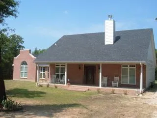Colonial style home with 4 columns across the front porch of this 3Bedroom, 2 bath home located in the quiet countryside on 17 ac. With an abundance of wildlife to hunt or just watch. Home has stained concrete floors, living area with fireplace, split bedrooms, media room or den area and covered patio.