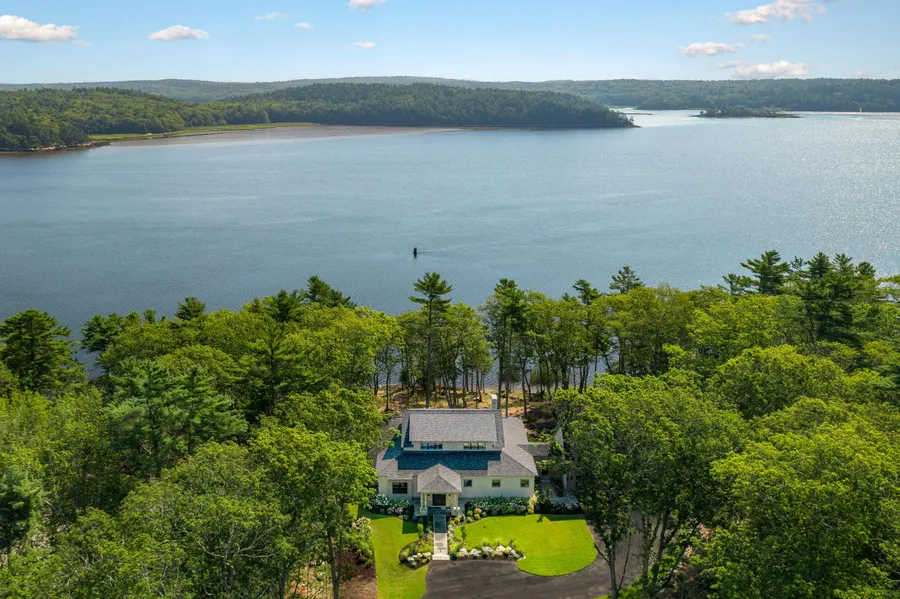 Discover the epitome of coastal living in this luxurious, brand-new Shingle-Style crafted by one of Maine's premier builders, nestled along 194 feet of pristine water frontage, with a stunning sandy beach on the shores of the Kennebec River, where it meets the Atlantic Ocean. Set on one of the most coveted lots in the exclusive Kennebec Shores community, this property is a haven for boating and fishing enthusiasts, with panoramic views of rolling meadows, Seal Rock, and charming coves and harbors. Greeted with beautiful gardens and flowering trees on a 1.98 private lot, the open-concept interior design seamlessly marries elegance and comfort. The heart of the home is a chef's kitchen featuring custom cabinetry, a walk-in pantry, stainless Bertazzoni appliances, and a large quartz island with a walnut butcher block that flows into a dramatic family room. A soaring stone fireplace takes ce...