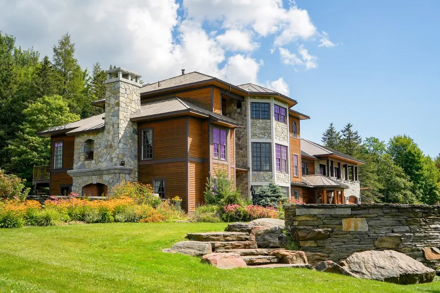 Seller says to sell before winter, bring an offer! A home for all seasons with natural light & beauty. Artistically and thoughtfully constructed and sitting just beyond a distinguished apple tree dominating the front lawn; 171 diverse acres-meadows, fields, woods, spring-fed pond, wildlife, and mountain vistas visible throughout the house and property. Antique English oak doors punctuate the entry. A graceful old-world feel accompanies the panoramic views. Architectural detail punctuates the estate. Every room opens to the surrounds. Spacious living areas, indoor & out, are havens for hearty entertaining. The sophisticated great room has stately stonework with 6 balcony doors for fresh air access to the beauty. The stonework around the residence adds serenity and timelessness to the dramatic scenes. Generous bedrooms and additional bedrooms and a sauna populate the guest house; the maste...