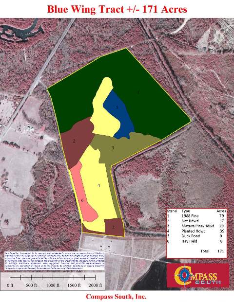 The property features a +/- 9 acre duck impoundment, merchantable timber, planted hardwood, established food plots, and pasture/hay fields.