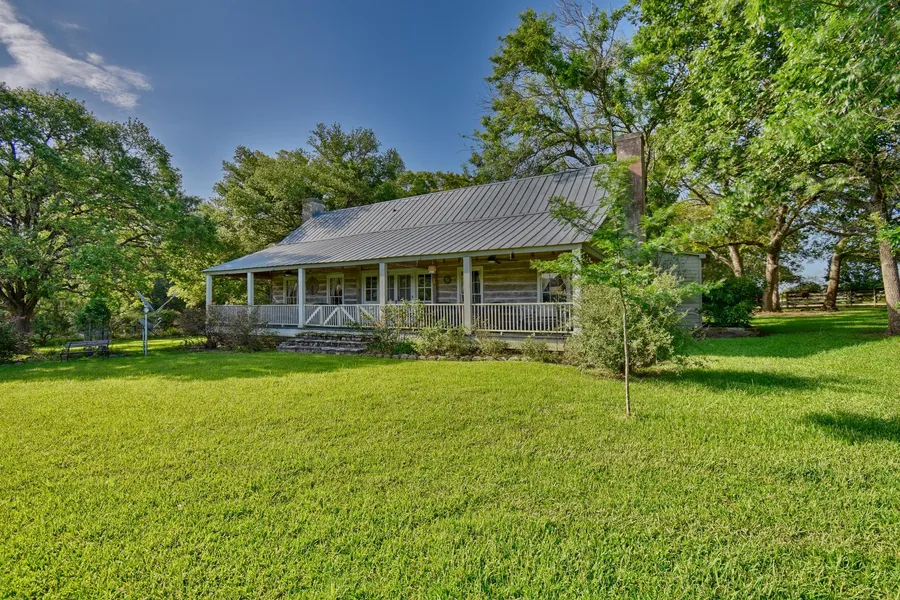 Triple Creek Ranch is a piece of Texas history! Whether used as a family compound of B&B, you will find a combination of rugged simplicity & stylish charm. Positioned on 25.58 acres minutes from Round Top, the significantly historic 3BD/5BA home was built in 1825. The walls are made of cedar logs with century old longleaf pine floors. The restoration was documented. The kitchen, with a wood burning fireplace, is cozy and has new granite counter tops. There are also wood burning fireplaces in the large family room and the master bedroom. The property is being offered turnkey. Conveniently located 1.5 miles south of Round Top, drive through the woods to the main home, 1/1 guest house and a separate entertainment cottage w/full kitchen. The property has lovely oak trees, fruit trees and a garden area. A concrete floored 40x40 steel pavilion, 35x30 metal storage barn, fenced and cross fenced pastures for your horses, goats or cows and a chicken coop make this offering a must see!
