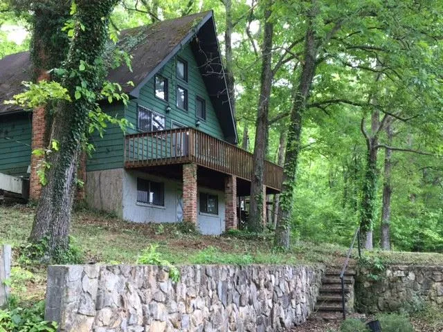 9.41 acres within walking distance to boat ramp & view of Lake. Charming chalet with so much potential! With interior work would make a great vacation home or rental. Storage shed, city water, room for additional cabins as rental potential. Sold as-is.