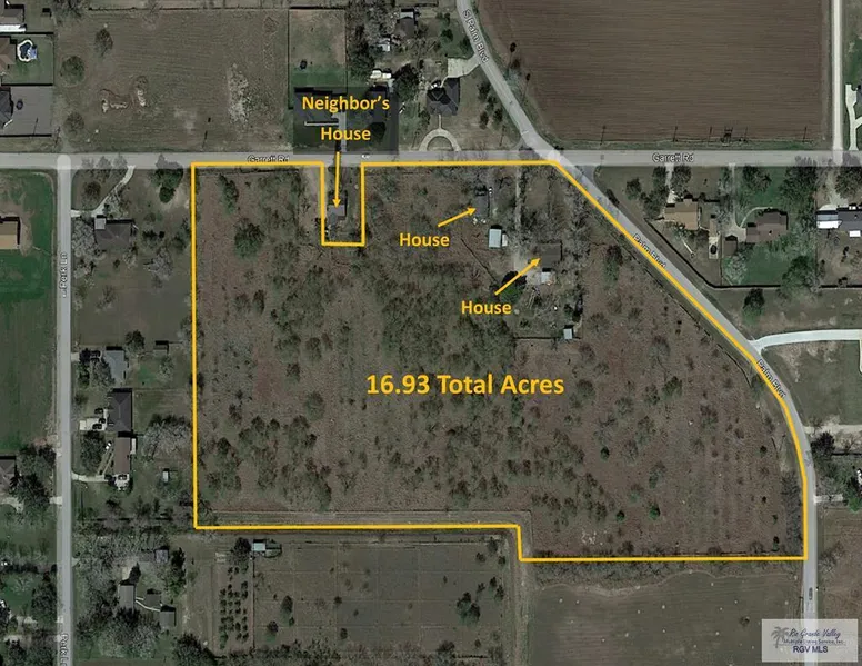 CONTRACT PENDING This is a very good piece of development land on the SW corner of Palm Blvd and Garrett Rd. The land is outside the city limits in Cameron County. The tax rate is a very low 1.89%. There is a large Harlingen water line in front of the land and Harlingen sewer across Garrett Rd. on the NE corner of the intersection. The land borders a drainage canal on the south side and the flood zone for the whole property is Flood Zone X (the best). The irrigated land also has access to electricity. There are two old houses that come with the land that could be repaired and sold separately but they do not add value to the property and are being sold in "As-Is" condition. There is also a small piece of land that is cut out of the acreage along Garrett Rd. that is owner by a different land owner. That house does not convey with the sale of this property (see the photos to study the surve...