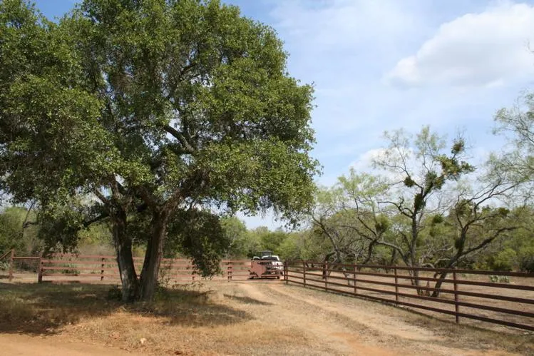 The Land & Vegetation: Hilly terrain with a wet-weather creeks & draws. The land is covered with trees and brush, consisting of Post Oak, Blackjack Oak, Live Oak, Elm, Mesquite, Bee Brush, Persimmon and more. I cant recall seeing any cedar (juniper) on this ranch. The land has granite rock outcroppings, scat-tered quartz and other very interesting rocks, granite gravel and fertile sandy loam soils. There are distant Hill Country views from many locations on the ranch. A very scenic seasonal creek crosses the ranch. Ex-cept for a small portion of one side, the fences are in good to like-new condition.