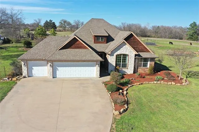 Nestled on 4.79 acres of beautifully landscaped land, this stunning 4-bedroom, 2-bathroom home offers the perfect blend of elegance, comfort, and functionality. Showcasing excellent curb appeal, a spacious 3-car garage, and a thoughtfully designed layout, this property is ideal for those seeking a peaceful retreat with modern conveniences. Inside, youll find 10 ceilings, crown molding, and an inviting entryway that leads into a warm and open living space. The gas log fireplace adds a cozy touch, while the open-concept living room, kitchen, and dining area provide the perfect setting for both entertaining and everyday living. The kitchen features a pantry, ample storage, and built-in shelving for added convenience. Designed with a desirable layout, the home offers both privacy and functionality. The primary suite has a large closet, double sinks, and a soaking tub, creating a true spa-like retreat. A mudroom and additional built-in storage areas add to the homes practicality. Outdoor enthusiasts and homesteaders will love the fenced 2-acre section, perfect for livestock or horses, along with several fruit trees and a thriving garden. The covered back patio provides a serene space to relax and enjoy the picturesque setting. Plus, the 18x26 shop offers plenty of space for projects, storage, or hobbies. Beautiful landscaping surrounds the entire home, enhancing its charm and tranquility. There is also a rainwater catching system perfect for watering your garden. Whether youre looking to start a homestead, raise animals, or simply enjoy the beauty of country living, this property has it all. Dont miss out on this rare opportunityschedule your showing today!
