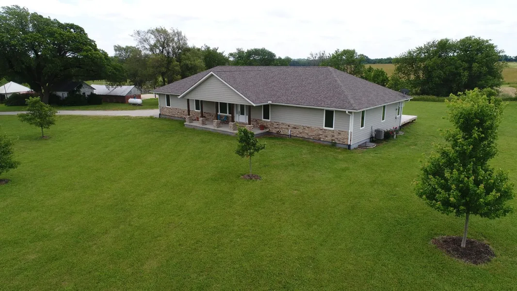 Vaughn-Roth Land Brokers is extremely honored to present this incredibly attractive rural home and 8 +/- acres located between Burlington and Waverly. The property offers a beautiful and spacious 5 bedroom, 3.5 bathroom ranch-style home finished with top-shelf amenities. The square footage is 1,912 on the main level with a full basement.