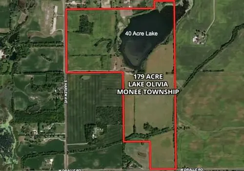 This 179 Acre recreational property is in a great location to build a home or getaway cottage near the 40 acre lake. (240 Amp service at lake site). It is located within the village of Frankfort Illinois, just one mile west of the I-57/Stuenkel Road interchange. There are approximately 66 CRP acres that currently have an annual income of $9934.00. There is 240 amp electric on the property near the lake. Please contact Doug Deininger at (815)439-9245 with any questions.