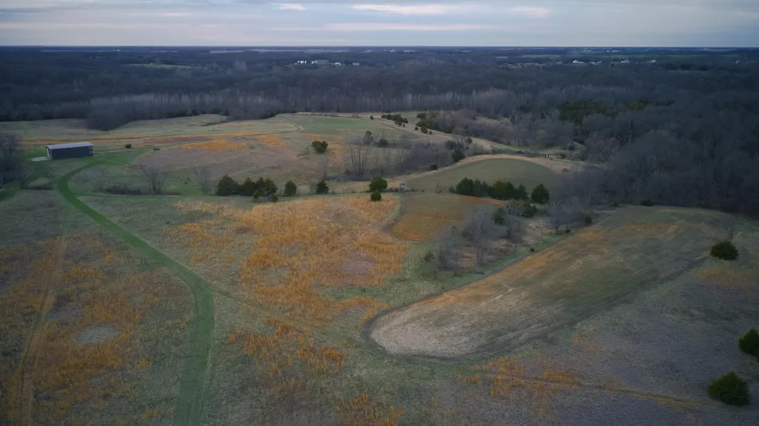 An insulated 40' x 60' steel pole barn includes a two-story, 19' x 12' living quarters. The spacious garage can house tractors, ATVs, and other equipment for farm operations. Living quarters comprise a small kitchen, bathroom, and one bedroom downstairs along with an upstairs room capable of accommodating multiple people. The upstairs room also overlooks a prime section of the property, providing an ideal vantage point for observing and hunting wildlife.