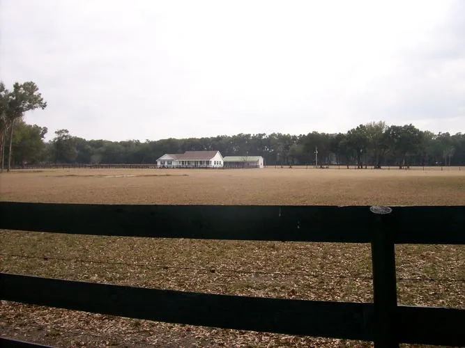 Nice 18.04 Acre parcel located just one mile off North Hwy 441 between Ocala and Gainseville - 1996 three bedroom 2 bath split bedroom plan in excellent condition with over 2100 sq. ft of living area - Great room with Fireplace - wood floors ,cathedral ceilings - open kitchen - formal dining room - 2 car garage - front and back porches - nice level ground - excellent pastures - fenced 3 paddocks - open pole barn with large office - everything is in tip top condition - ready to move in - no restrictions - zoned agricultural - This property is priced $429,000