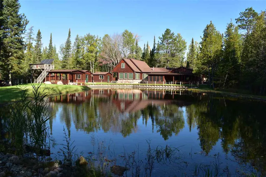 ARE YOU LOOKING FOR SOMETHING UNIQUE?? Here is it! This is a spectacular property on the outskirts of Grayling. Situated on 18.31 acres with state land on 3 sides. This sprawling cabin/home features over 2,900 finished square feet ~ the rustic flair will knock your socks off. The main cabin features a 24x40 great room complete with bar area, great for entertaining. Large utility room with commercial grade sinks, washer/dryer too. Large kitchen with rustic cabinetry, all the appliances are staying with the home. Living room off the kitchen with large windows over looking the large, stocked pond in the backyard. Large main floor bedroom and bathroom. An additional bedroom upstairs, plus a sleeping loft up the ladder off the kitchen. Wait, that’s not all3 seasons porch plus a covered deck off the back of the house. Two 14x14 Bunk House cabins to the side, complete with baths and decks. Dee...