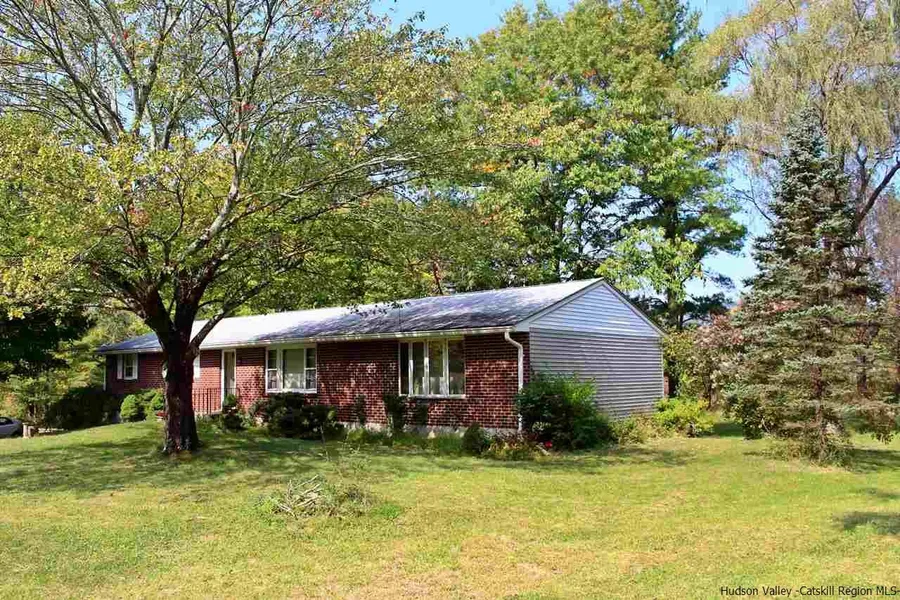 Mid-century brick sided ranch with stunning views of the Shawangunk Ridge for sale for the first time since it was built in 1969. Eighteen plus level acres that were pasture in 1969 and now are a young forest and Cedar grove. Walk the many on site trails to the north west edge of the property to see just how damn amazing the view is. You're looking out over a nearly 200 acre farm at the entire Millbrook Range. Nice open floor plan with oak floors, a big dining room and living room. The coal stove in the center of it all will keep things toasty. You can walk from the kitchen or living room out onto the big back deck. Three bedrooms upstairs, one with it's own half bath and full bath upstairs. The lower level has two other framed out bonus rooms, summer kitchen, full bath, one car garage and workshop area. The property is all level and the house sits in the right front corner. A nice spring fed pond is in the front left corner. The center of the acreage is a cedar grove. The entire north west edge of the land looks at that view and it's quite amazing. Could be room back there to build a couple more homes looking directly at the ridge. Bring your engineer. Keep the ranch out front for a guests house or rental.