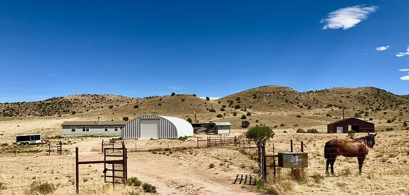 Turn key horse property. 3/2 fully furnished Solitaire Energy Star home w/wood burning FP & AC, 2400 sq. ft. Shop - 13 ft. roll up door, 24 x 36 barn - 2 horse stalls, 12 x 24 tack room, fully fenced - 3 pastures, 12 x 12 insulated pump house, owner financing available.
