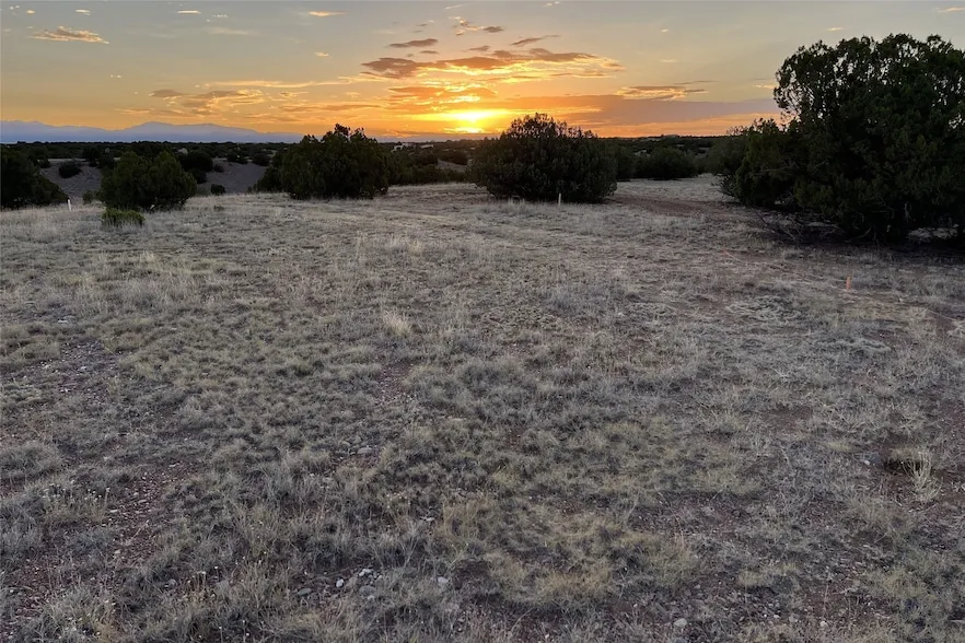 This ready to build turnkey 18.55-acre lot has a shared well and pump-house, which includes a 10,000-gallon water storage tank and 1,200 ft. deep well serving 5 residential lots. Water and all underground utilities, electric, cable, and internet are already present and functional at the lot. This Location offers privacy and 360 spectacular panoramic endless vistas of all mountain ranges. Clearly visible from the property include the Ortiz, South, San Pedro, Sandia, Jemez, Cerrillos Hills and the Sangre de Cristo ranges; and the Galisteo River Basin down below. This particular 18.55-acre lot is situated at the intersection of SR14/CR42 and has two private gated entrances off paved county road CR 42, just a few feet from the Turquoise Trail SR14. A driveway runs throughout the property for quick access to the build sites already approved by Santa Fe County. The covenants allow for horses, stables, barn, main house, accessory dwelling unit, studio and workshop. Amenities are close-by on fully paved roads. 20-25-minute drive to the Santa Fe Plaza; 3-4 minutes to Beer Creek Brewing / San Marcos Cafe & Feed and Hardware Store / Shell Gas Station; 10-12 minutes to I-25 and easy access to Santa Fe shopping and the Presbyterian Hospital; 15-16 minutes to St. Vincent's Hospital; 3-4 minutes to the Turquoise Trail Fire Department; and just next door, 1-2 minutes are the Allan Houser Sculpture Gardens. This lot with its unique topography, location, amenities and privacy has it all.