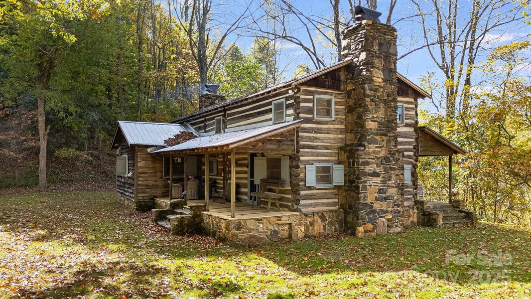 You will feel like you're on the set of "Outlander!" Built for a circuit court judge in 1810 and 1840, these historic log cabins were moved to this site in 1975, when they were conjoined, restored and modernized into a cozy retreat with 21st century comforts. While secluded in bucolic beauty at the top of a hill, plateaux above and around this site are large enough for more structures; the top one offers unimpeded views as far as the eye can see. Two recently rebuilt rocking chair porches in front and back lead to the grassy, level yard. Inside, two large wood-burning stone fireplaces provide a homey atmosphere for reading and contemplation. With 3 bedrooms, 2 full baths, living and family rooms in addition to several other small rooms, the cabin comfortably sleeps as many as 14. A perfect escape from the stress of modern life, yet the charming town of Burnsville is a short 8-minute drive away. Please note: this property sustained no damage whatsoever from Hurricane Helene.