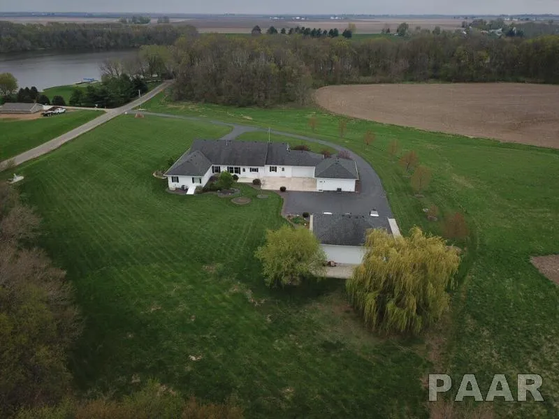 Beautiful Small Country Estate! Easy drive from Macomb, Quad Cities, Peoria and Galesburg. Unique, Custom Designed Ranch with many amenities and tremendous views of Little Swan Lake. 7200 Sq. Ft. of Living Space - 3600 Sq. Ft. per level. Impressive circle drive. Spacious open floor plan. Main level offers living room, conversation area, wet bar, gallery, formal dining and fabulous kitchen with stone countertops, walk in pantry, master suite and laundry. Lower level with family/rec/media area, additional kitchen & laundry, 2 bedrooms and storage. Attached L-shaped 4 car garage that is heated & cooled. Large back patio. Includes a 36 x 30 building/shop. Presently the tillable acreage is in corn and soybean crop rotation. Owners are willing to sell the house, 3 stall 36 x 30 out building with 4.27 Acres. Seperate from the tillable land. Ask for details.