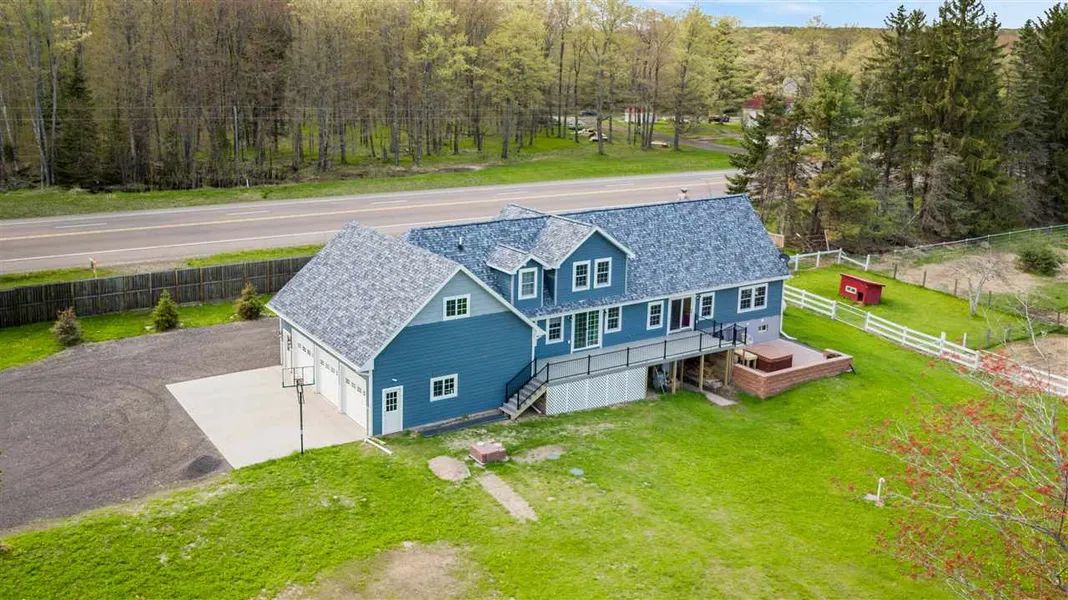 This 4 bed, 4 bath home is remarkable! In 2016 the main home was remodeled with an addition of a big master bedroom with a master bath and tons of closet space, as well as a guest suite that can be used for more living space, visiting friends and family, or possibly to make some rental income. With the remodel the main home had many updates! The roof, the septic system, the furnace, and the windows were all replaced. Many other aspects were updated, refinished, or retouched. When you walk in your entryway you will be invited in by the open living area, with vaulted ceilings from the original spectacular log home that was built in 1995. In 2018 the kitchen had updated counter tops, updated cupboards, and high end GE stainless steel appliances installed. Through the kitchen and dining area there are sliding doors that step onto the back deck. From here you can look over the large expanse of a yard, as well as a fenced in area with a weather shelter for horses or livestock. On the side of the deck is the patio ready for you enjoyment. To add to the relaxation there is a barrel sauna. The home is set on 18.69 beautifully wooded acres. The 3 car garage has a large attic, which could also give you room for more expansion, as well as a concrete apron in front of it to help with keeping your new home clean. There is additional living space below the main part of the home, and a big workshop below the addition side which is accessed through the garage. The fence in front of the home gives you complete privacy from the highway and the location leaves you with a short 20 minute drive to Michigan Tech and Houghton. The main floor suite is compliant with the American's with Disabilities Act living requirements. The owner is going to leave the four wheeler with the plow for the future owners if they would like it.