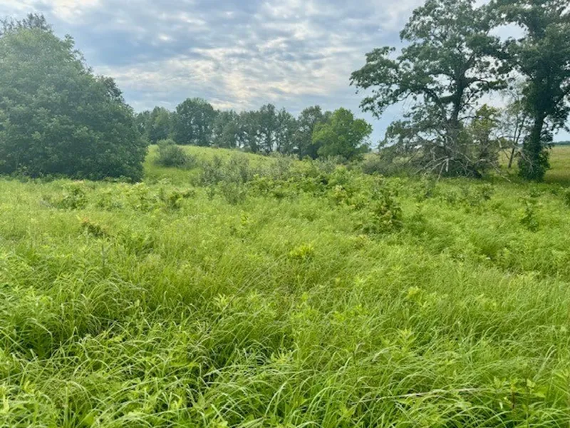 This property has beautiful, thick grasses for bedding and cover and it has timber strips with area for food plot in the back, surrounded by timber on one side and tillable fields on the other and a small creek. Its a great hunting piece!