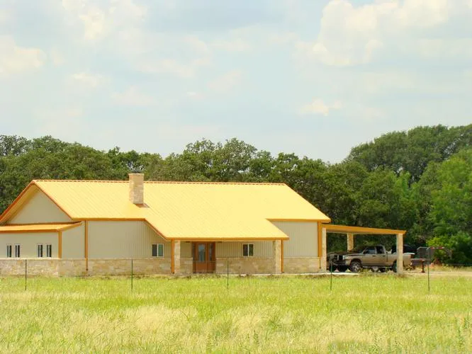 This newly constructed ranch style home is ready for you to move right in! High efficiency metal frame and exterior with copper roof and rocked 3 feet high around entire home. Beautiful rock fireplace is center stage to the open living, kitchen and dining area. Wrapped wood framed windows and custom cabinets give this home an elegant rustic touch. Oversized master bedroom with huge walk-in closet, double vanity bath and bench seat shower. Beautiful views of rolling hills, quiet and secluded. The property has new fences, large oak trees and 1 pond which make this place very versatile. Convenient access to I-20, approx 5 miles north.