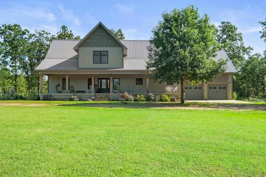 Welcome to your own private retreat! This custom-built, stunning 3BR, 3.5BA home sits on 18 peaceful acres and offers 3,704 sq ft of thoughtfully designed space. Features include an office with built-ins, two spacious living areas, abundant storage, a large laundry/mudroom, and an oversized garage with a safe room. The main-level primary suite includes access to a private covered deck and a spa-style bathroom with a freestanding tub, tiled walk-in shower, custom cabinetry, and a large built-in closet. Upstairs are two oversized bedrooms, each with a full bath and multiple closets plus a central second living area and a laundry chute. The open-concept kitchen/living area features vaulted ceilings, natural light, and beautiful views. Exterior highlights include a 54x60 shop (30x40 enclosed, with lean-to storage and two overhead doors), a circle driveway, large covered porches, and a 4-acre stocked pond with a dock. A rare find offering space, comfort, and privacy! *Ask to see video tour and floor plans. Proof of funds or pre-approval are required before showings.