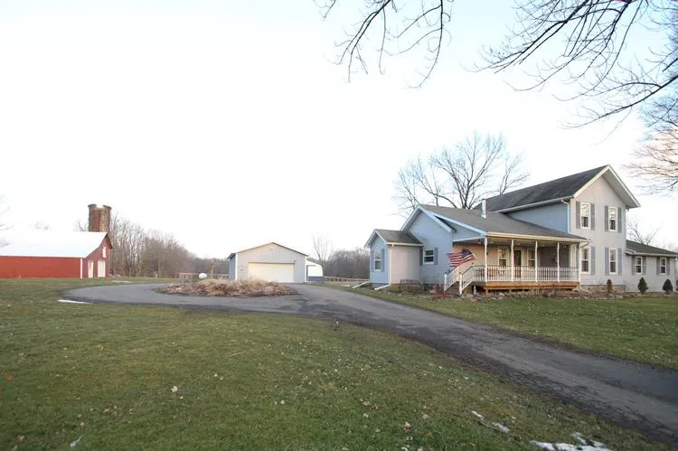 Fantastic horse property with a spacious 2000 sq.ft. 3 bedroom, 2 bath home on 18 acres that has pastures, hay field and woods. Enjoy great county living from the covered front porch, deck or on horseback. Great home with country kitchen including appliances, huge formal dining room with wood burner, family room with fireplace, living room, large master, MFL, 2 full baths. One of the baths is charming with antique piece vanity and claw foot tub. The barn is 36x48 and has water, 4 stalls, all with individual doors to pastures and/or paddocks. Additional space for more stalls and hay storage. There is a second barn, 32x24 with loft, oversized 2 car garage wired for welder, propane forced air plus a corn burner furnace, central air, 200 amp electrical service and replacement windows.