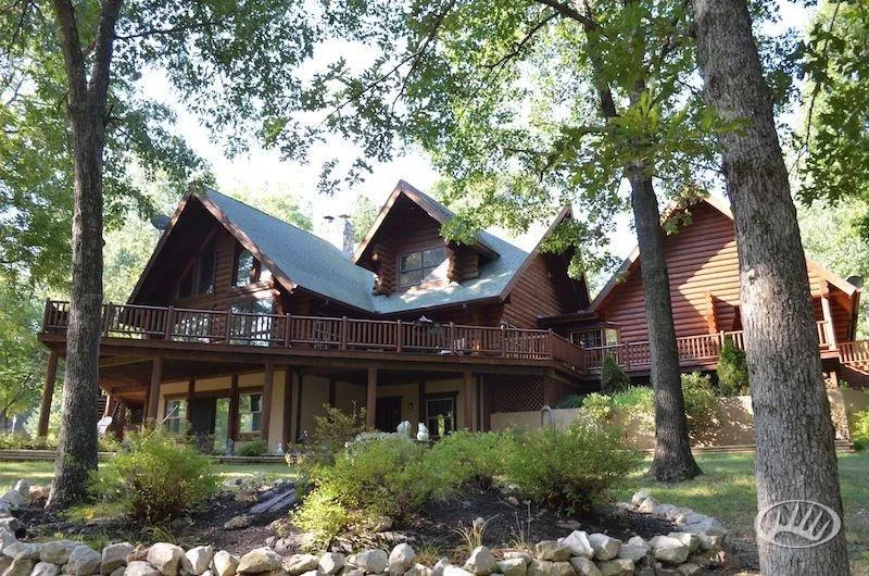 Amazing estate property only minutes from Nixa. The custom built 5,500 s/f Montana style log home overlooks the woods and the water as the deer and turkey play. Meticulously maintained inside and out with many updates. Newer appliances & pellet stoves, 50 yr. architectural roof, garage door openers, lighting, fixtures and security system. This extraordinary property rests on a beautiful and fenced 18 acres only 7 minutes to Nixa and 1/4 mile to James River access. Gated entry with circle drive, attached 3 car garage, shop building and large shed. Truly a 'one of a kind'! Situated in the Nixa School District.